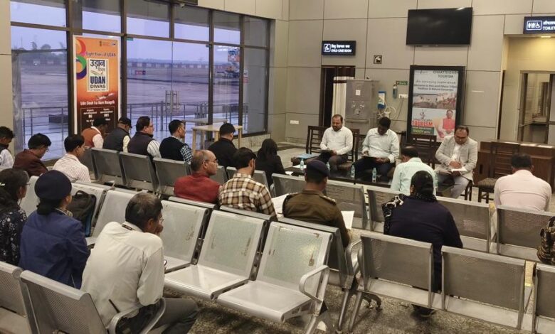 एयरपोर्ट की विकास कार्यों और अन्य आवश्यक व्यवस्थाओं के संबंध में कलेक्टर ने की बैठक