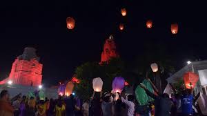धनतेरस पर जगमग हुआ माता महालक्ष्मी मंदिर, आकाशदीप ने आसमान में बिखेरी रंगबिरंगी छटा