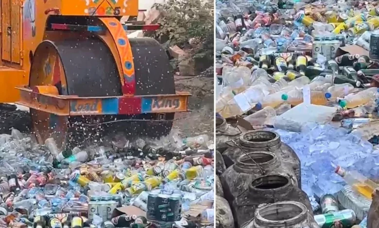 भोपाल में डेढ़ करोड़ की शराब पर चला रोड रोलर… 21 महीने में जब्त हुई थी 45,000 लीटर