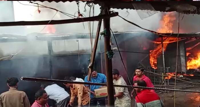 जुन्नारदेव बाजार में 17 दुकानें जलीं, फायर ब्रिगेड ने पाया आग पर काबू