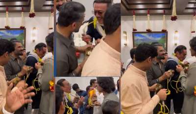 सुनीन शेट्टी, जैकी श्रॉफ और पंकज त्रिपाठी का ये वीडियो तेजी से वायरल हो रहा है। इस वीडियो में जैकी श्रॉफ अलग ही जोश में नजर आ रहे हैं। पंकज त्रिपाठी और सुनील शेट्टी भी उनका पूरा साथ देते दिख रहे हैं। तीनों ही एक्टर भक्ती में डूबे और बड़ी खुशी के साथ गणपति की पूजा-अर्चना करते दिख रहे हैं। वीडियो में आप देख सकते हैं कि सभी के हाथों में मंजीरा है और सभी इसी पूरे उत्साह के साथ बजा रहे हैं। जैकी श्रॉफ मंजीरा बजाते हुए नाचते गाते भी नजर आ रहे हैं। उनका ऐसा अंदाज पहली बार देखने को मिल रहा है।