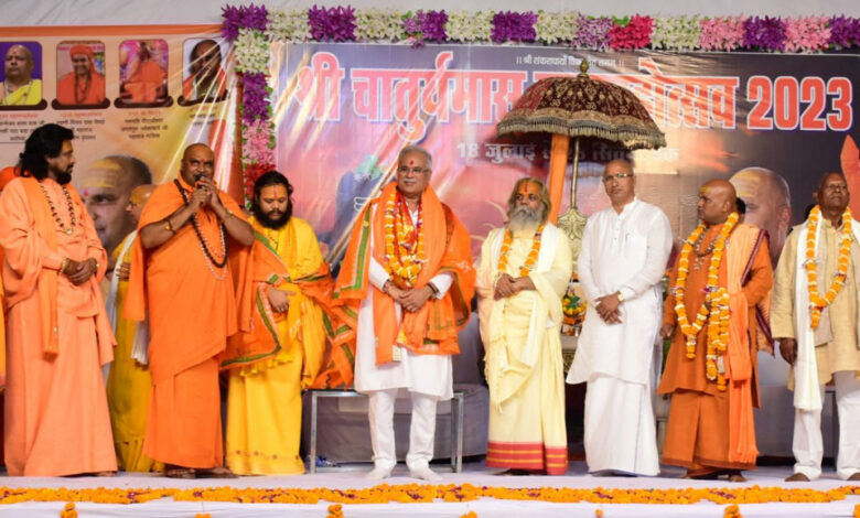 मुख्यमंत्री भूपेश बघेल राजनांदगांव जिले के छुरिया विकासखंड के ग्राम सांकरदाहरा में चातुर्मास महोत्सव के समापन अवसर पर आयोजित राष्ट्रीय संत सम्मेलन एवं किसान मिलन समारोह में शामिल हुए। कार्यक्रम को संबोधित करते हुए उन्होंने कहा कि सरकार का उद्देश्य जनता की सेवा करना है। गरीब एवं जरूरतमंदों, माताओं, वनांचल क्षेत्र के आदिवासियों, किसान, मजदूर एवं संत महात्मा की सेवा करना है। हमारी सरकार ने लगातार इस दिशा में कार्य करते हुए लगभग 5 वर्ष पूर्ण किया है और इन 5 वर्षों में कई चुनौतियां भी रहीं। कोविड-19 संक्रमण के समय विकट संकट आया। इस महामारी के दौरान सरकार द्वारा किसानों की मदद के लिए राजीव गांधी किसान न्याय योजना लाई गई। संतों का ध्यान गौवंश की रक्षा में रहता है। गौ सेवा करने से संतों का आशीर्वाद मिलता है, क्योंकि यह संतों के हृदय की बात होती है।
