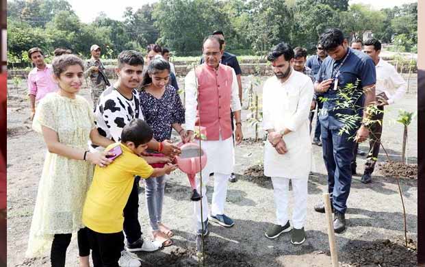 मुख्यमंत्री चौहान ने लगाए नीम, बेलपत्र और गूलर के पौधे