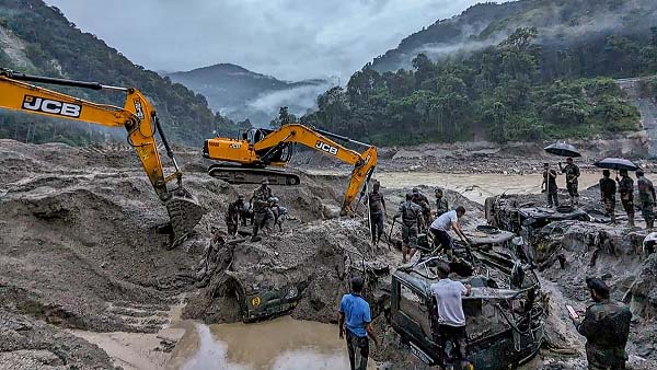 अधिकारियों ने शनिवार को कहा कि भारतीय बचाव टीमों को सिक्किम में बाढ़ प्रभावित इलाकों तक पहुंचने में मुश्किल हो रही है। इलाके में अभी भी तेज बारिश हो रही है। इस बीच हालातों को देखते हुए, गृह राज्य मंत्री अजय कुमार मिश्रा ने गंगटोक में मुख्यमंत्री आवास पर राज्य में अचानक आई बाढ़ को लेकर सिक्किम के मुख्यमंत्री प्रेम सिंह तमांग के साथ बैठक की है।
