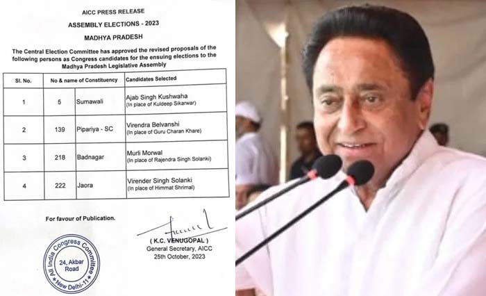 मध्य प्रदेश में कांग्रेस ने चार सीटों पर कैंडिडेट बदले