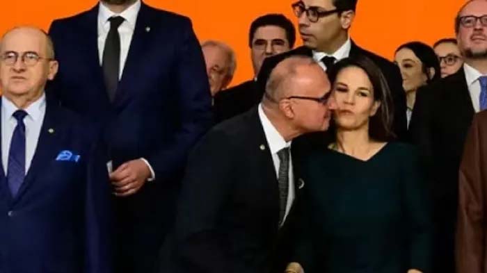 सोशल मीडिया पर वायरल वीडियो में देखा जा सकता है कि रेडमैन जर्मन विदेश मंत्री एनालेना की तरफ हाथ मिलाने के लिए मुड़ते हैं और फिर उन्हें किस कर देते हैं. वीडियो में एनालेना उन्हें रोकती दिख रही हैं. यह घटना तब हुई जब ईयू शिखर सम्मेलन की एक बैठक के बाद सभी नेता फोटोशूट के लिए जमा हुए थे.