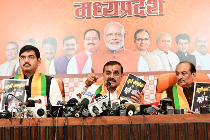 प्रदेश अध्यक्ष श्री शर्मा ने कहा कि कांग्रेस पार्टी ने सिर्फ मध्यप्रदेश में नहीं, बल्कि छत्तीसगढ़, राजस्थान, कर्नाटक, हिमाचल प्रदेश हर जगह जनता से झूठे वादे किए हैं। हिमाचल प्रदेश में कांग्रेस ने कैबिनेट की पहली बैठक में एक लाख रोजगार देने का वादा किया था, लेकिन ये वादा अभी तक अधूरा है। वहां की महिलाएं आज भी 1500 रुपये मिलने की राह देख रही हैं, जिसका वादा कांग्रेस ने किया था। छत्तीसगढ़ में शराबबंदी का वादा करने वाली कांग्रेस ने शराब की होम डिलीवरी शुरू कर दी। कांग्रेस की सरकार तेंदूपत्ता श्रमिकों का बोनस तक डकार गई। बेरोजगार नौजवानों को भत्ता दिया जाने का वादा कांग्रेस ने राजस्थान में भी किया था, लेकिन वहां भी उस वादे का हश्र मध्यप्रदेश जैसा ही हुआ और किसी नौजवान को भत्ता नहीं मिला। कर्नाटक में मुफ्त बिजली का वादा करने वाली कांग्रेस ने सत्ता में आते ही बिजली की दरें 2 रुपये यूनिट बढ़ा दी थी। श्री शर्मा ने कहा कि कांग्रेस पार्टी ने हर जगह इतना झूठ बोला है कि अब वो झूठ बोलने की मशीन बन गई है और प्रधानमंत्री श्री नरेंद्र मोदी के इस कथन को सही साबित कर रही है कि कांग्रेस झूठ, परिवारवाद, भ्रष्टाचार और अपराधीकरण की गारंटी है।