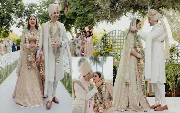 परिणीति (34) और राघव (34) रविवार शाम उदयपुर के ‘द लीला पैलेस’ में आयोजित एक निजी समारोह में शादी के बंधन में बंधे। दोनों की शादी की पोशाक और मुख्य समारोह की थीम ‘पर्ल व्हाइट’ थी। इस दौरान बारात सजी हुई नावों में सवार होकर ‘द लीला पैलेस’ पहुंची।