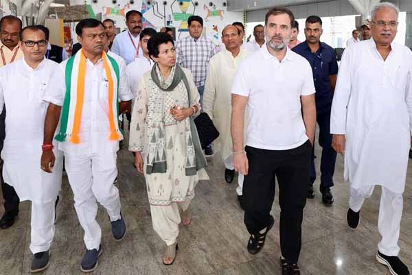 राहुल गांधी पहुंचे रायपुर, शामिल होंगे आवास न्याय सम्मेलन में