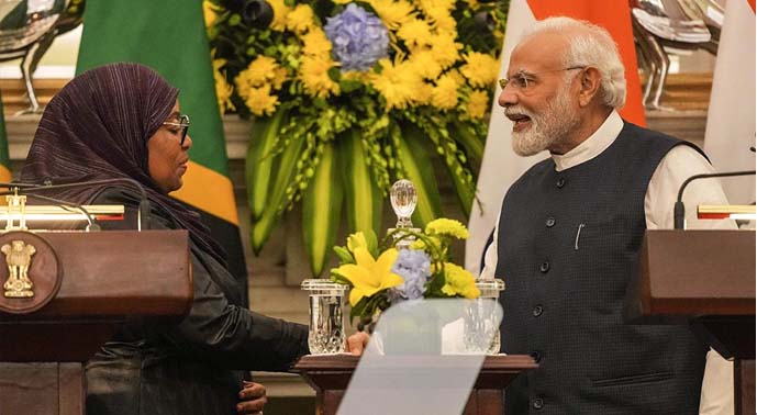 उन्होंने कहा, “हमारे संबंधों की सबसे महत्वपूर्ण कड़ी हमारे मज़बूत और सदियों पुराने संबंध हैं। गुजरात के मांडवी बंदरगाह और ज़न्ज़ीबार के बीच दो हज़ार साल पहले व्यापार किया जाता था। भारत की सिदी जनजाति का मूल पूर्वी अफ्रीका के ज़ान्ज़ तट पर माना जाता है। आज भी बड़ी मात्रा में भारत के लोग तंज़ानिया को अपना दूसरा घर मानते हैं। उनकी देखरेख के लिए तंज़ानिया से मिल रहे समर्थन के लिए मैं राष्ट्रपति हसन को हृदय से आभार व्यक्त करता हूँ। योग के साथ साथ कबड्डी और क्रिकेट की लोकप्रियता भी तंज़ानिया में बढ़ रही है। हम दोनों देशों के लोगों के बीच आपसी नजदीकियां बढ़ाने के प्रयास जारी रखेंगे।” तंजानिया की राष्ट्रपति सुहसन ने भारत अफ्रीका शिखर सम्मेलन में भाग लेने की पुष्टि की और कहा कि इस सम्मेलन की सफलता के लिए वे हर संभव सहयोग देने के लिए तैयार हैं।