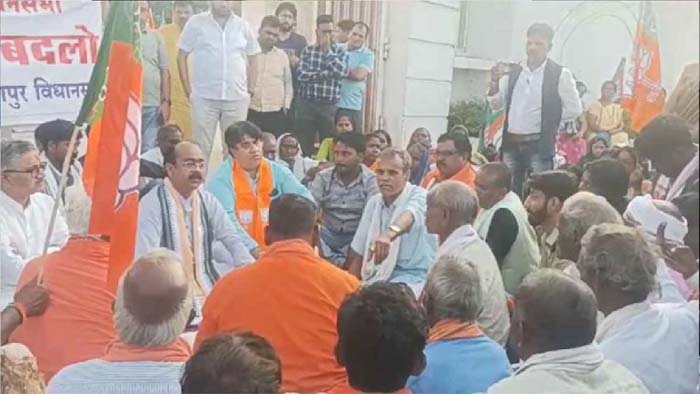 बीजेपी कार्यालय के बाहर आदिवासियों का धरना